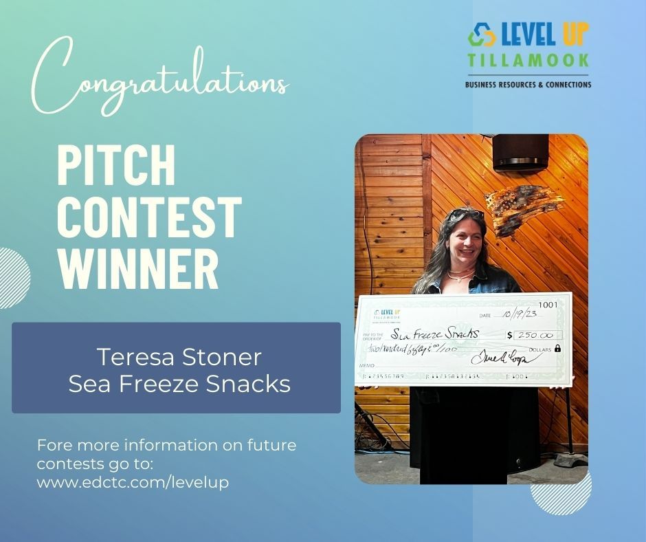 Teresa Stoner from Sea Freeze Snacks for 3rd place winner at LevelUp Grand Finale Entrepreneur Pitch Contest!